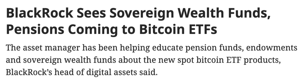 This is optimistic news. BlackRock is providing education on the BTC ETF to pension funds and other sovereign wealth funds. I think the time when they will actually make meaningful investments is when real interest rates turn negative, but anyway, this will definitely happen at some point.