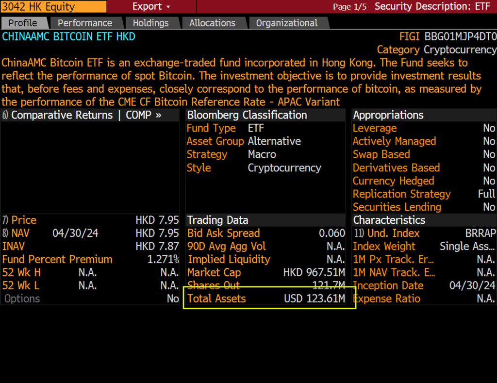 On April 30th, the BTC/ETH ETF was launched in Hong Kong. On the first trading day, we recorded lower trading volume than expected, which was very disappointing. Very low trading volume compared to US ETFs. I wasn’t at all surprised because this was expected, but people seem to have sold the news.