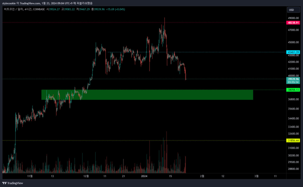 The options market currently has 36.5% open interest for January. The 42k level is the highest negative gamma level, and BTC fell below that level on Monday, making the situation even more unstable than before. Currently, BTC is at oversold levels according to various trading indicators and is near 38k, an important level that people are interested in. I expect BTC to proceed slowly in the form of bleeding, even if there are further declines, so unless there is a sharp drop below 38k this week, I expect volatility to remain low.