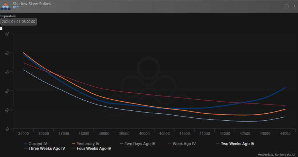In particular, ETH IV fell faster and a lot. Short-term options show a clearly different form than before. As mentioned in many other great options analysis articles, ETH call sellers are back (FEB 2700, MAR 2900). Perhaps the overall market atmosphere has cooled down and the delay in the ETH spot ETF may have had an impact. Buyers of BTC and ETH call options clearly suffered as premiums disappeared quickly.