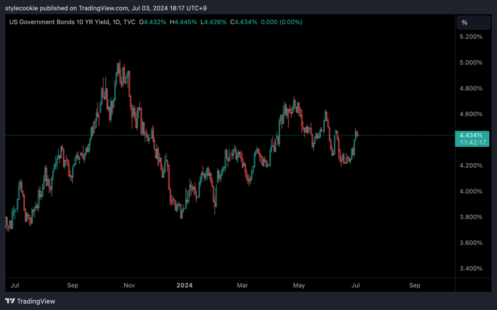Yesterday’s Tesla delivery gave me a lot to think about… Cars are durable goods that are sensitive to interest rates. Delivery exceeded expectations without an interest rate cut. Currently, it is unlikely that interest rates will be raised further, so I believe the upside potential for 2Y is also low… I still think there is no recession in 2024. (Base Case)