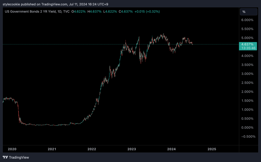 2Y is still the same. The upside potential is low and only downside potential remains… I don’t know when interest rates will be lowered, but looking at Powell’s recent remarks, it feels like the possibility has increased. I will be watching to see how bonds move after the CPI data is released.