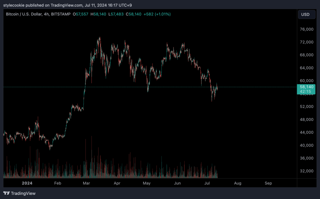 BTC is showing unusually weak movements. Still trading sideways in the lower range since $53,000 last week. There are no special movements. Most likely you are waiting for CPI data. I believe there is still a risk of BTC falling further, but I feel it is at a level where it is difficult to be sure what moves it will make. If it falls once more, it seems likely that it will fall to $50,000 to $48,000, and if so, it seems likely that it will hit the bottom.