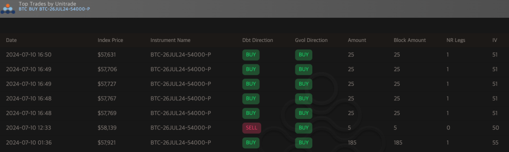 BTC DVOL moved from 40s > 50s last week and is currently at 49. If we move sideways throughout the summer, it will probably go lower, but compared to ETH, BTC Vol still feels like a low level. There were two special transactions.