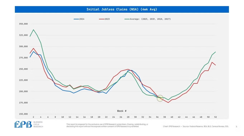 Non-seasonally adjusted jobless claims are on a different path than a recession. If we were in a recession, we would see a surge in jobless claims. Currently, I do not see such a phenomenon…