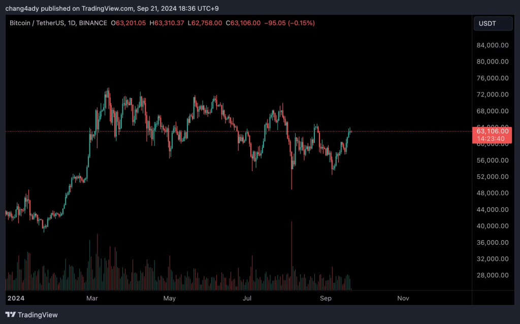 I am patiently watching BTC rise based on macro analysis. I can’t say it’s a perfect trend reversal yet, but structurally, creating a higher high (HH) and breaking the 200DMA will be signals to confirm the trend reversal. 65k looks like a major turning point, and while both up and down are possible at the moment, I expect it to go up. It is likely that a trend will start in one direction or another starting from October. There is no eternal sideways movement.