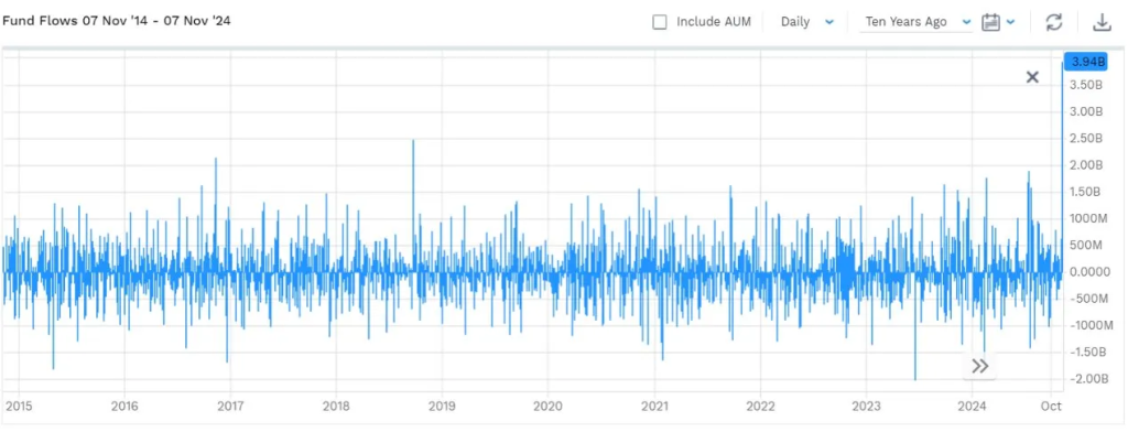 BTC ETF inflows hit an all-time high this week. This is significant in many ways. This suggests that there is a clear interpretation of BTC in the Trump trade on TradFi. As I wrote in last week’s article, BTC is in a very special situation in the positive direction of Trump trading. Trump is clearly likely to lead BTC in a positive direction along with US growth. Also, with the increase in ETF inflows + I think we will see more US states, corporations, pension funds buying BTC in the future. The situation has changed.