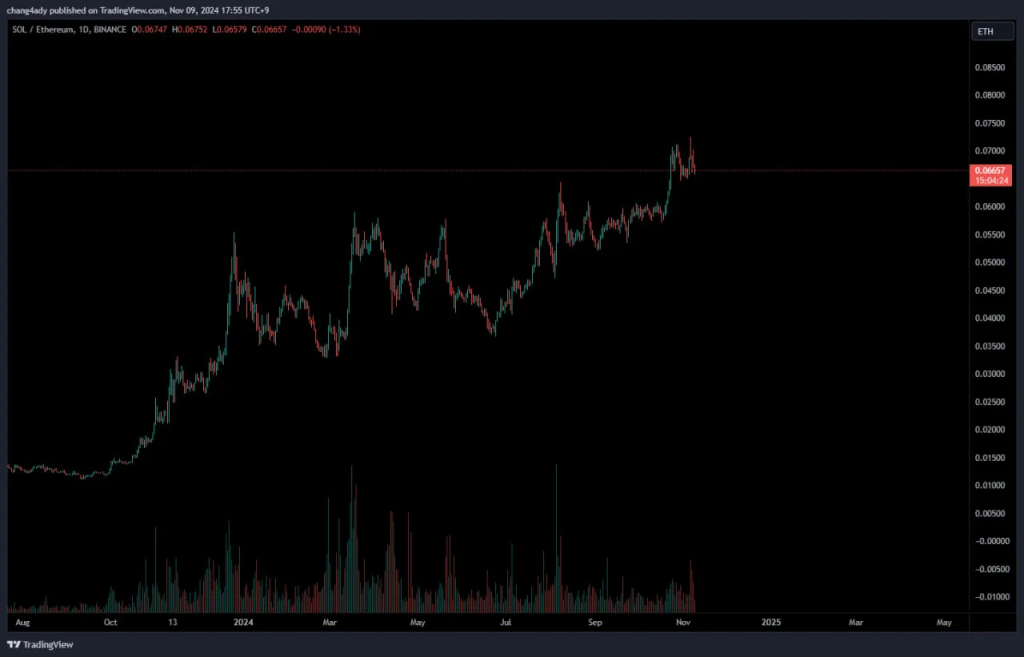 A clear increase in demand can also be seen in ETH. Remember what I said last week, ETH was trading at a very low price and RR was very good. And I thought if ETH further down and broke the uptrend, the market would be over. Using ETH price action as a market proxy has produced very good results. Blackrock and institutional use of ETH chain (RWA/STO), and the clear regulation of crypto coming after Trump’s victory are likely to invigorate ETH and altcoin markets. (This does not mean that SOL performance will be low)