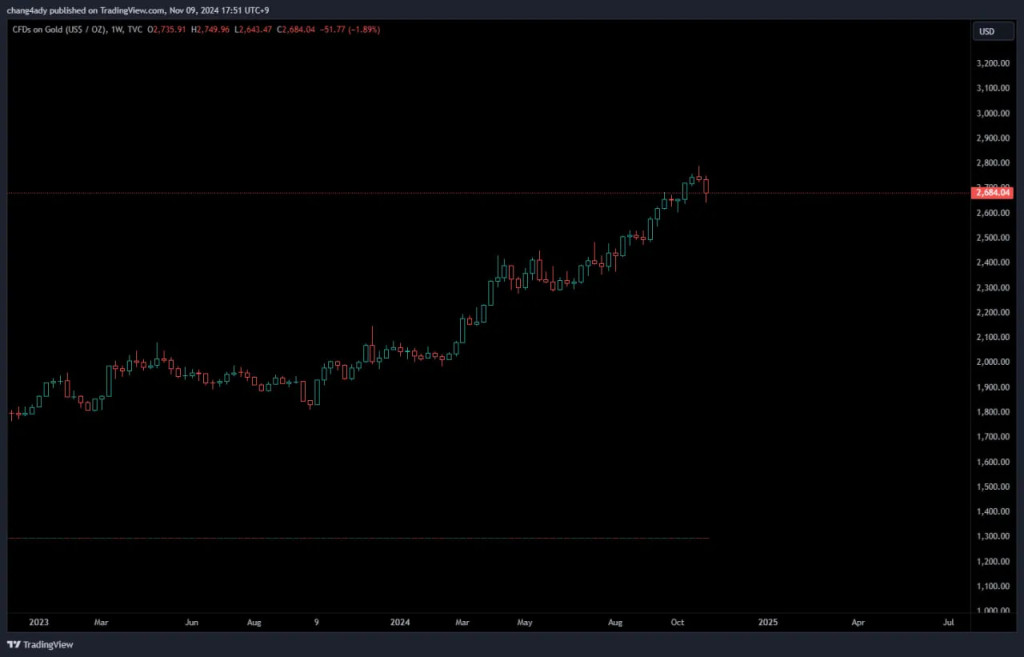 It is unclear exactly what will happen, but it seems clear that one of the driving forces for gold’s rise, the ‘war issue’, is weakening with Trump’s election. Risk assets including BTC are up, but gold is down. Historically, BTC and gold have always followed the same path, but when BTC has a big uptrend, it has outperformed gold. The environment seems ripe for BTC to perform better.
