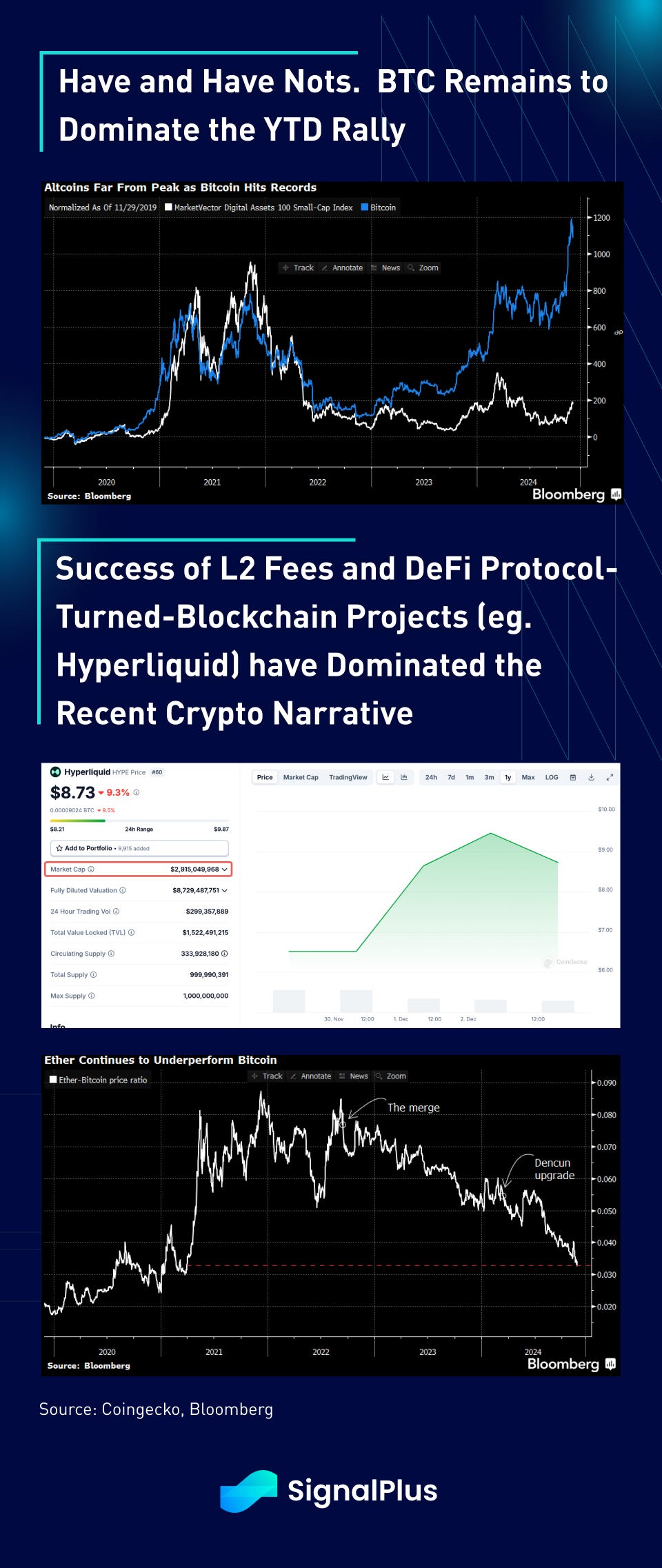 The bulk of the current rally has been concentred in the ‘majors’ (sans ETH), with BTC leading the charge and altcoins still struggling to even get back to its January peaks currently. While the recent successes of L2 and protocol-turned-blockchain (eg. Hyperliquid) have contined to dominate the crypto mindshare. we are seeing some signs of life in Ethereum through ETF inflows, registering +330M on Friday. Will we see a positive spill-over rally for more secondary majors before the end of year?