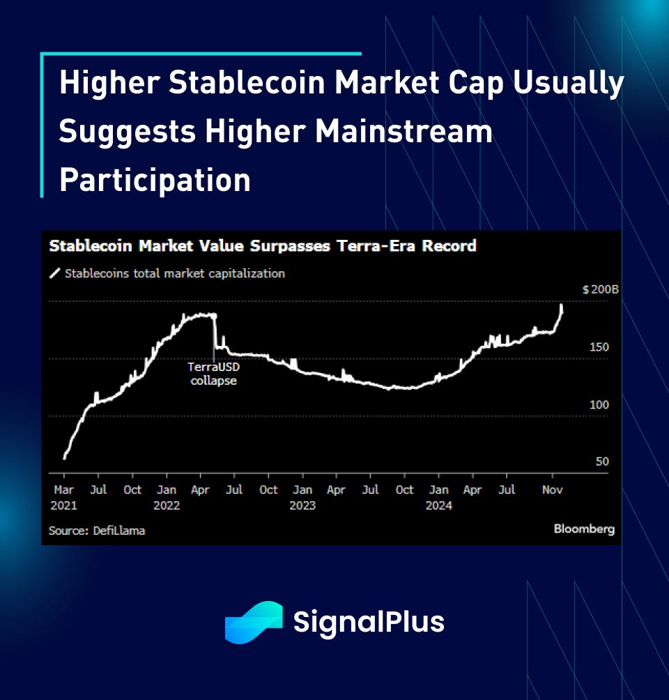In any case, the underlying metrics for crypto continue to look positive, with stablecoin market value finally surpassing the highs seen during the Terra-Luna days. Recall that stablecoins are usually the first stop for most fiat-users entering into crypto, and a higher market cap (fixed price, thus all quantity driven) suggests higher mainstream participation.