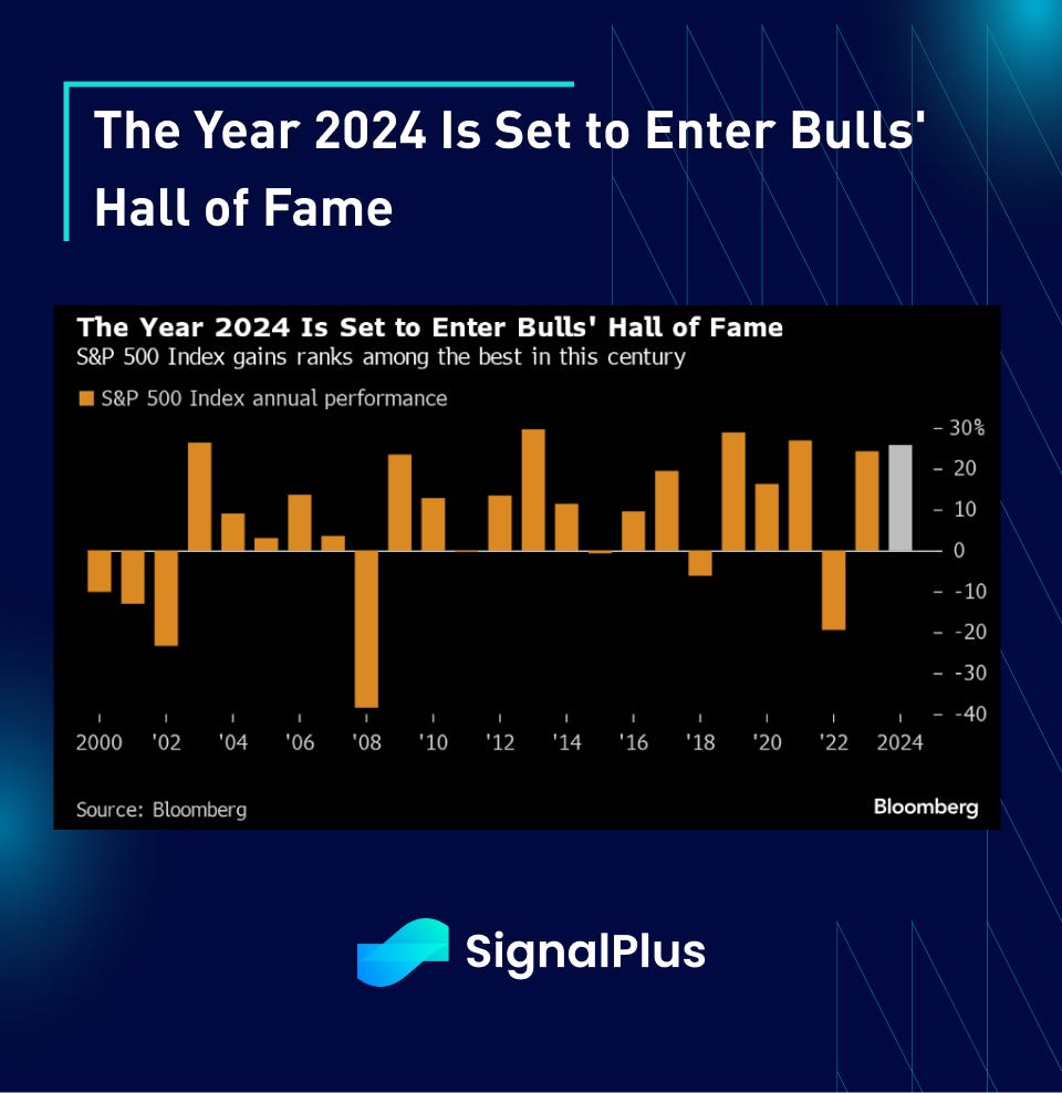 Last week was Thanksgiving week in the US, with light volumes and markets staying in a holding pattern for the most part. US equities are about to make history once again, with 2024 turning into one of the best performing years in history, with the last 5 out of the past 6 years yielding high double digit returns.