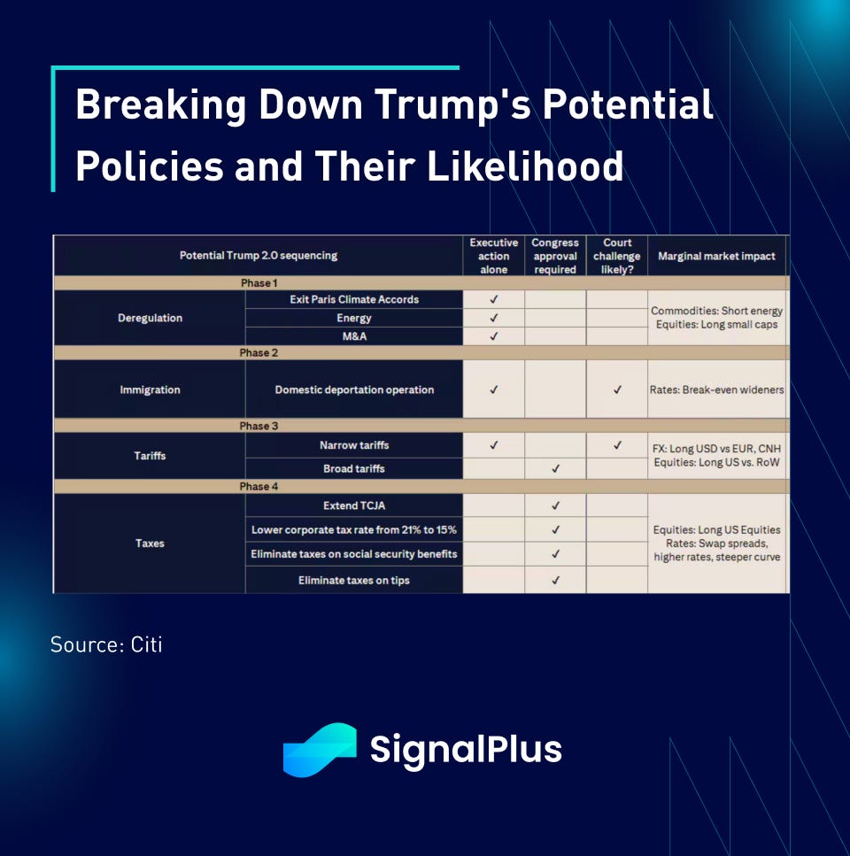4. On the tariffs side, markets expect to see a lot of hard hitting headlines as early as Q1, where Trump has the benefit of experience from his 1st term, with China likely to be the main target following the completion of the Section 301 review. A broader tariff against Europe and other trade partners will require congressional support and will likely require a reconciliation package from Trump as incentives. Timing will likely be towards Q2 and the negative impacts of cost-push inflation will be felt starting in 2H2025.