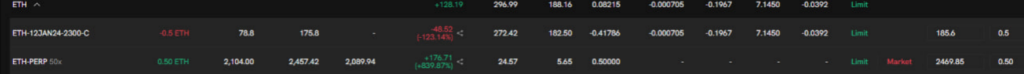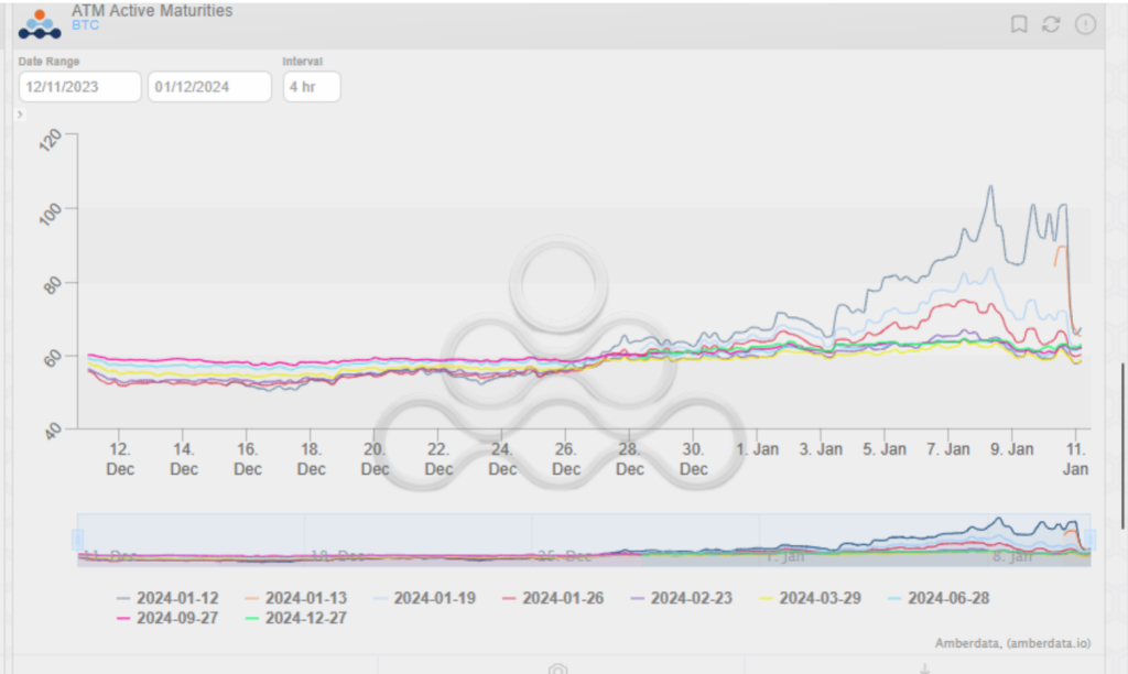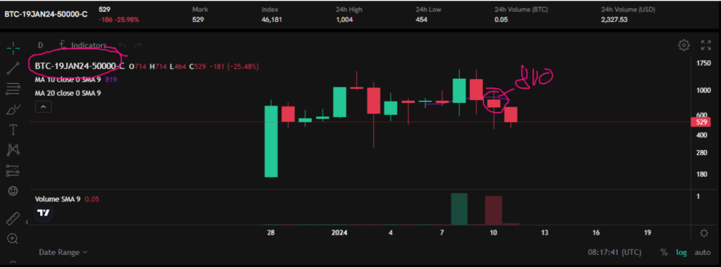 The news comes out and BTC barely moves; even today, January 11, it’s a bit above the price at which you bought. However, your call options are now worth 30% less, about 500 USD.