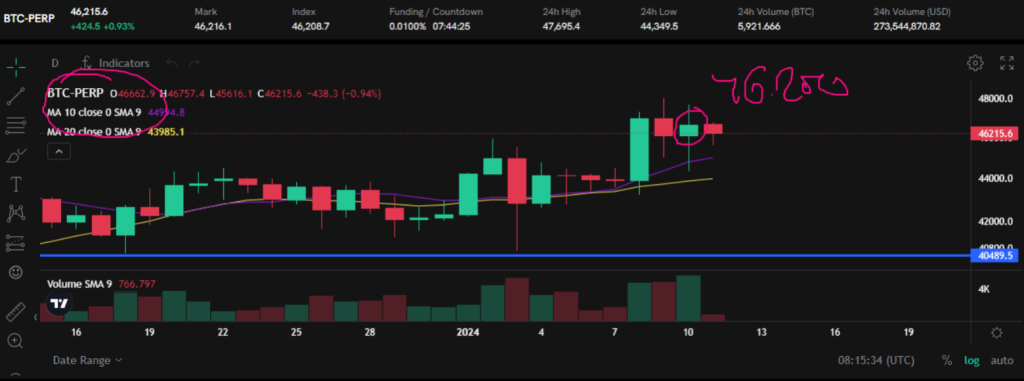 Let’s see, imagine that it’s January 10 and before a major news event, you decide that BTC could reach 50K. It’s currently trading at 46,250, but you think it can reach 50K.