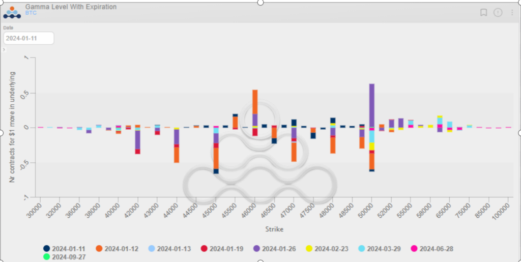 It’s clearly seen that the important area is the 45K zone of BTC, this zone is like a wall of hedges, we shouldn’t lose it, we see that the 47K to 50K zone is full of negative gamma. Aka, if we reach the zone, it resists, but if we surpass it, it can run up to 52K, but we have to see every day how these numbers change.