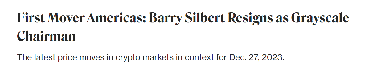 Grayscale Investments announced that Barry Silbert resigned as chairman, to be replaced by Mark Shifke, amidst the SEC’s consideration of its application to turn GBTC into a U.S. spot ETF.