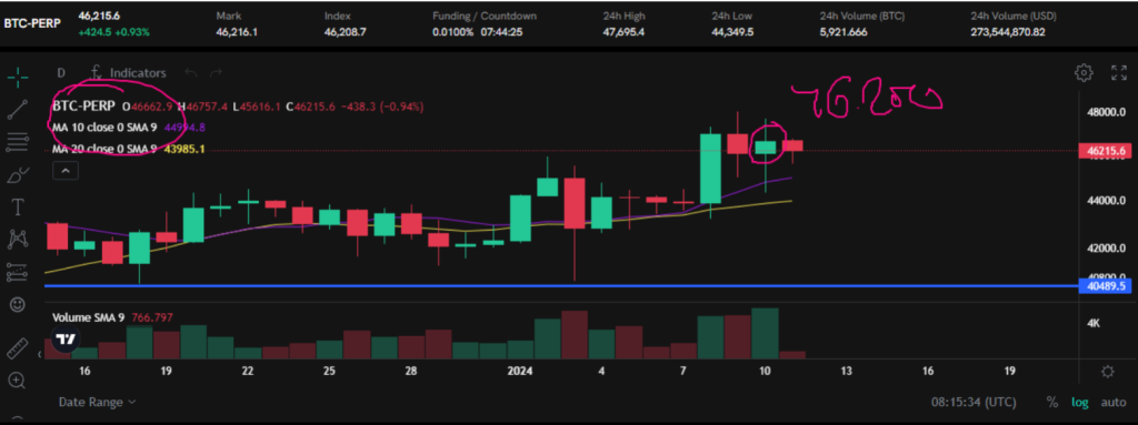 Vamos a ver, imagina que es el día 10 de enero y antes de una noticia importante decides que el BTC puede llegar a 50K. Actualmente cotiza a 46,250, pero piensas que puede alcanzar los 50K