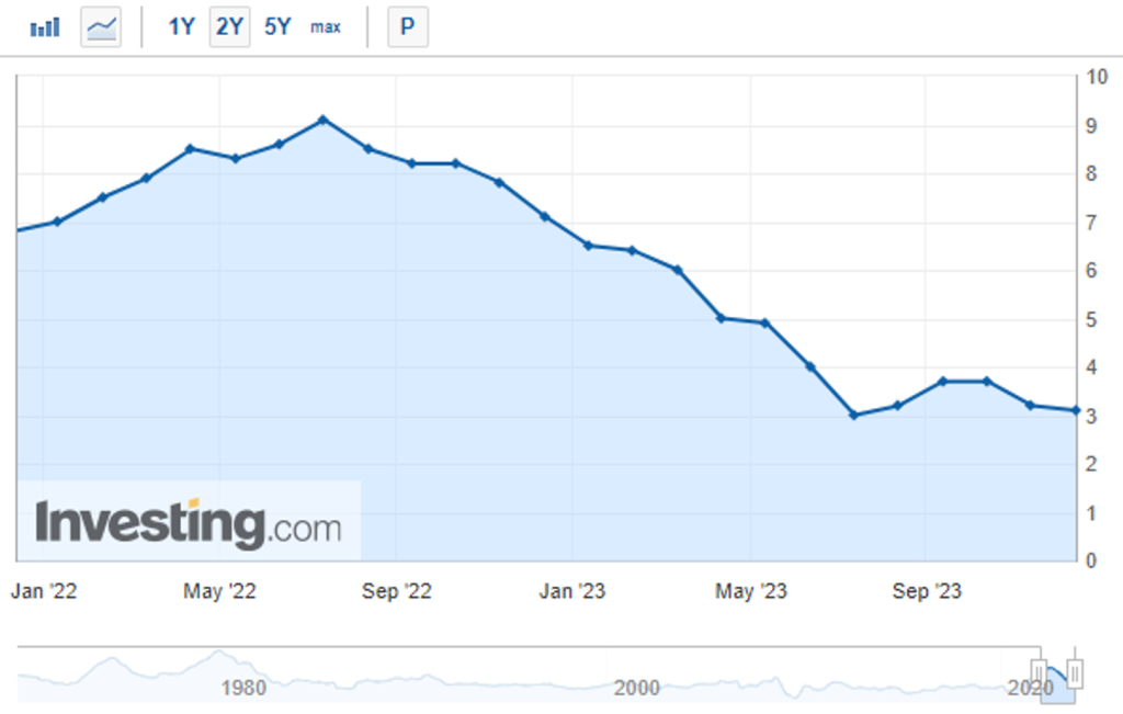 이번주에는 CPI 발표(1월 11일)가 있습니다. 저는 기존 뷰와 같이 Disinflation 추세가 유지 될 것이라 생각하지만 이번 결과 발표는 이전보다 중요할 수 있습니다. 예상보다 수치가 높게 발표된다면 단기적으로는 빠른 금리인하 기대감이 줄어들며 시장에 영향을 줄 수 있을 것이라 생각합니다. (CPI가 과도하게 상승하지 않는다면 시장에 심각한 영향을 미치지는 않을 것입니다)