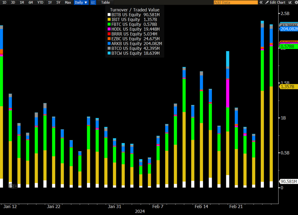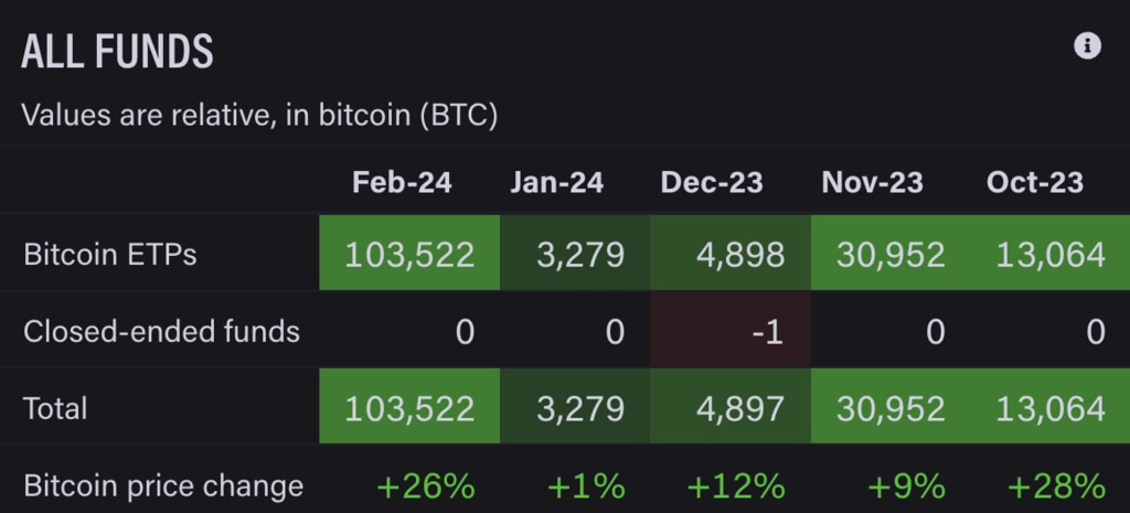 어제 현물 ETF는 또 다시 높은 거래량을 보여주었습니다. 정말 대단합니다. 계속해서 같은 말을 반복하지만, 수치와 팩트에 집중하고 있는 그대로를 보십시오. 수요는 매우 강하게 지속되고 있습니다. BlackRock IBIT는 오늘 $500M을 추가하였으며 현물 ETF는 2월에만 100,000 BTC 이상을 추가했습니다.