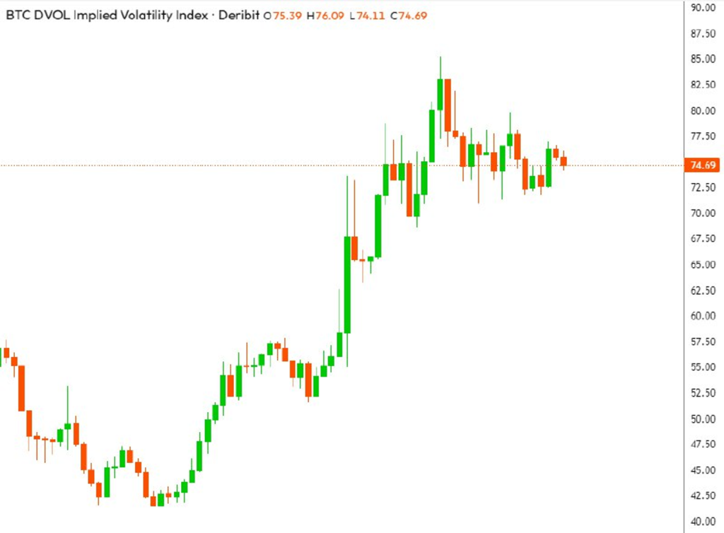 Vol remains at a high level. Nothing much has changed in a few weeks. People are still actively trading options and seem to be more inclined to do so ahead of the halving event.