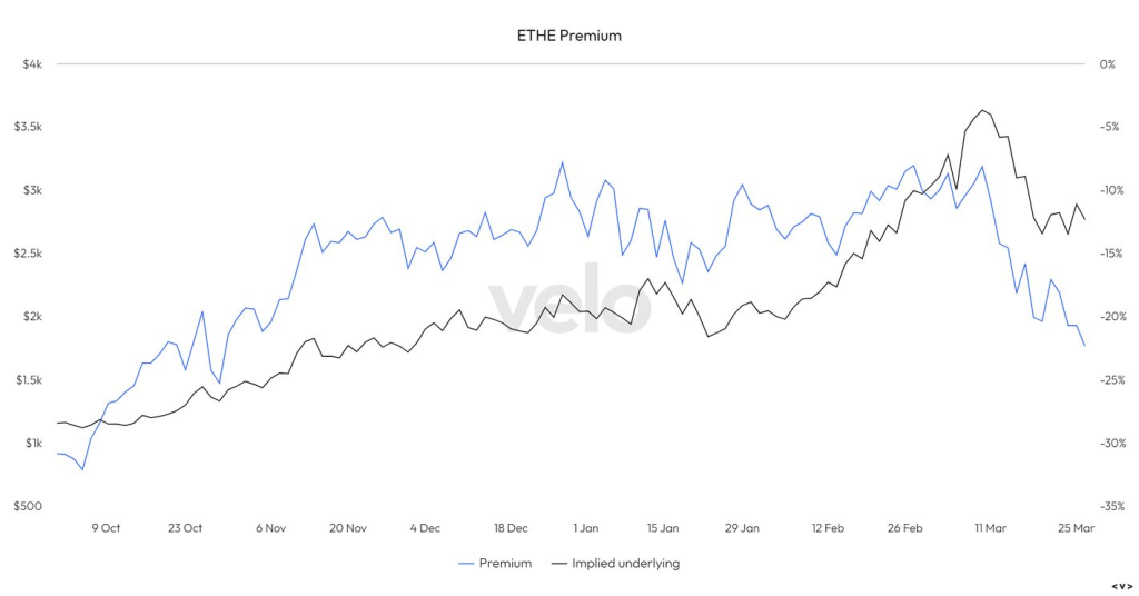 Currently, the options market is negative for ETH and bullish for BTC. There was ETH put spread trading this morning and BTC is still showing demand for long expiration calls. I also think the ETHE premium indicates that people’s expectations of ETF approval have decreased. ETH/BTC is also hitting new lows every day. It would likely take some optimistic news about ETFs for this sentiment to change.