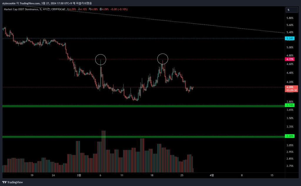 3. USDT.D continues to decline after rising to the indicated level. I am not sure what will happen, but I think that if BTC continues to rise, USDT.D will fall to the 3.2% level. I also refer to the start and end of big waves in market movement through the USDT.D chart. I think it would be helpful to refer to the levels displayed on the chart when the market rises and falls.