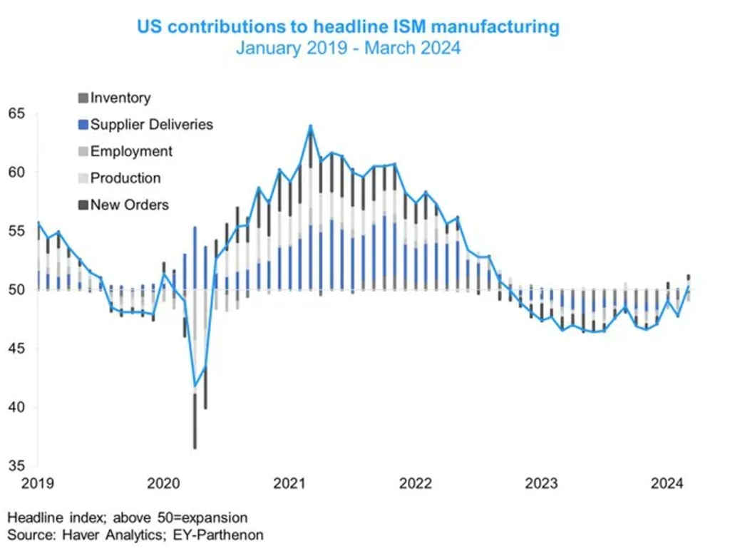 이번주에 시장이 하락하고 있는 이유는 금리인하에 대한 기대감이 줄었기 때문인 것으로 보입니다. 어제 발표된 ISM을 보면 2022년 9월 이후 처음으로 50 포인트를 넘어섰습니다. 해당 발표로 인해 국채 금리와 달러는 상승했습니다. 명백히 금리인하 기대감이 줄어든 것으로 보여집니다. 하지만 조금 다르게 생각해보면 경제는 튼튼한 것으로 알 수 있습니다. 제가 계속해서 말했듯이, 2024년에는 경기침체가 없을 가능성이 매우 높습니다. 주문은 늘어나고 있고 기업들은 성장을 이어나가고 있습니다.