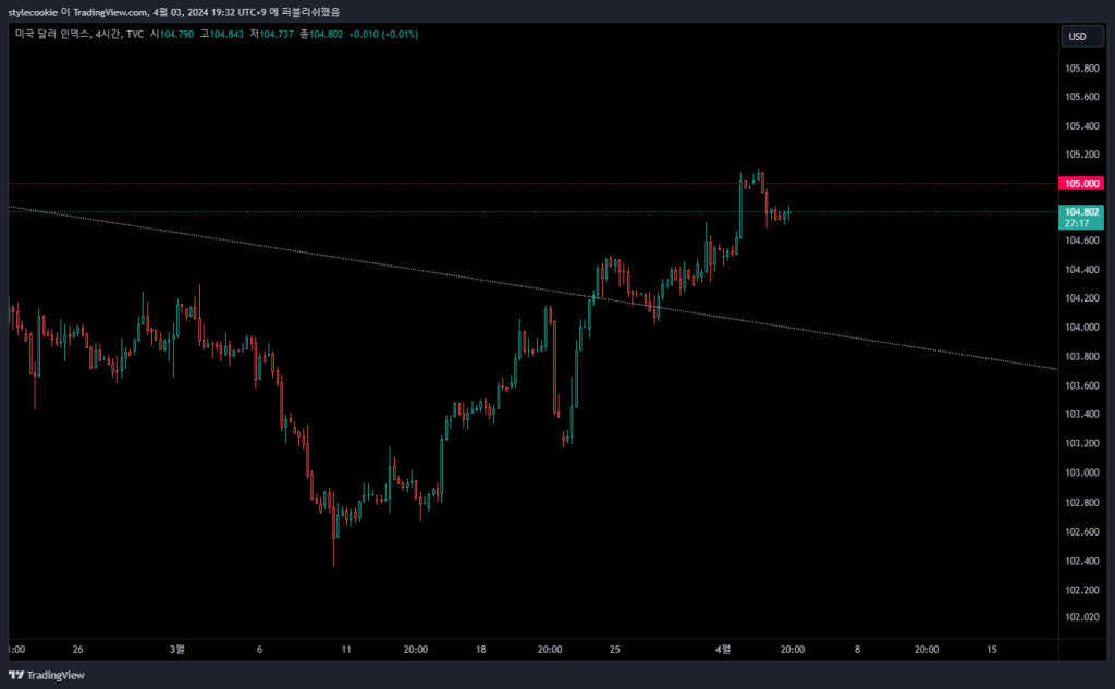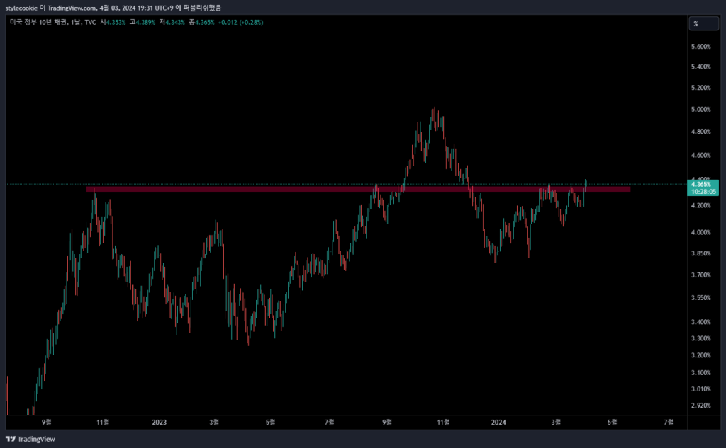 여러가지 추측들이 많지만 지금의 상황이 저는 시스템 리스크는 아니라고 생각합니다. 금리인하 기대감이 줄었기에 반응하는 상황이라고 보여집니다. 또한 예상보다 늦어지는 금리인하에 따른 통화가치 재평가. 추가로 오늘 파월 의장의 연설이 있습니다. 해당 연설은 국채 금리를 움직일 것 같기에 움직임을 잘 지켜보세요.