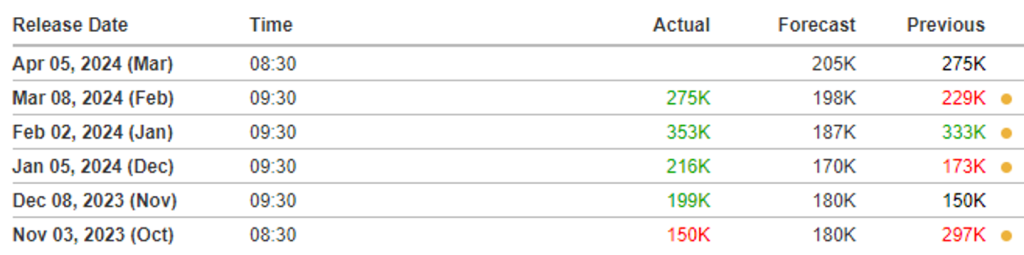 이번주 금요일은 NFP가 발표됩니다. 현재는 고용이 시장의 관심이고 금리 결정에 영향을 줄 것이기에 잠재적인 변동성이 예상됩니다. 만약 예상치 또는 이전보다 낮은 수치가 발표된다면 시장은 상승할 가능성이 높아보입니다.