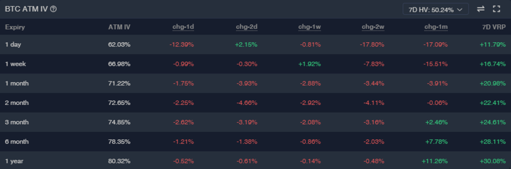 전반적으로 단기 스큐는 약세이지만 $200,000 콜옵션과 같이 BTC에 대한 장기콜은 여전히 매수되고 있습니다. 저번주 부터 거의 1000 계약의 $10M 규모입니다. 장기적으로 BTC가 상승한다는 것에 대한 강한 확신처럼 느껴집니다.