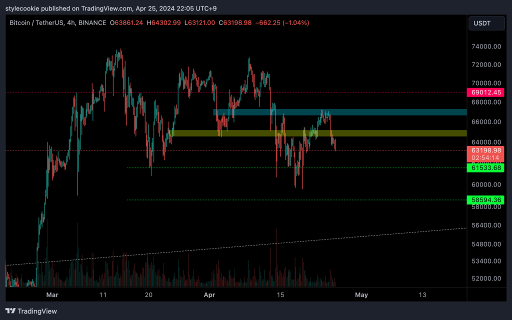 상당히 불안한 몇 주가 지속될 것 같습니다. 현재 시장을 판단하자면, 범위내에서 단기 트레이딩에 적합하며 범위를 돌파할 때 까지는 방향성을 확신하기는 어려울 것 같습니다. 즉, 이 횡보는 예상보다 더 길어질 수 있습니다. BTC가 4월에 $80,000에 도달 할 것 같다고 말한 제 한달 전 뷰는 확실히 틀렸지만 여전히 BTC는 Top이 아니라고 생각합니다. 하지만 먼저 이 불안정한 상황이 진정되어야 합니다. 전체 상황이 더욱 악화된다면 횡보/약세가 지속될 가능성이 높습니다. 당분간 너무 과도한 레버리지를 사용하지 않는 것이 좋습니다. 또한 알트코인 거래는 권장하지 않습니다.