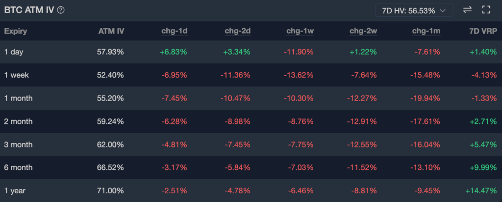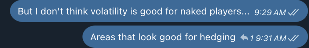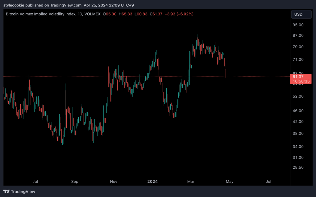 이번주 IV는 10포인트 하락하며 큰 타격을 입었습니다. 최근 몇주간 보기 힘들었던 학살. 지루한 시장 움직임이 지속되며 사람들의 기대 역시 줄어들고 있습니다. 범위 횡보, 높은 vol 환경에서 옵션 매도는 매력적이였습니다. 현재 많은 레버리지가 지워졌고 높은 변동성 환경이 어느정도 식을 가능성이 있다고 보여지기에 IV는 하락 추세를 몇주간 더 유지할 가능성이 있어보입니다. 명심하세요 반감기는 밈입니다. 즉각적인 수요로 이어지지 않습니다.