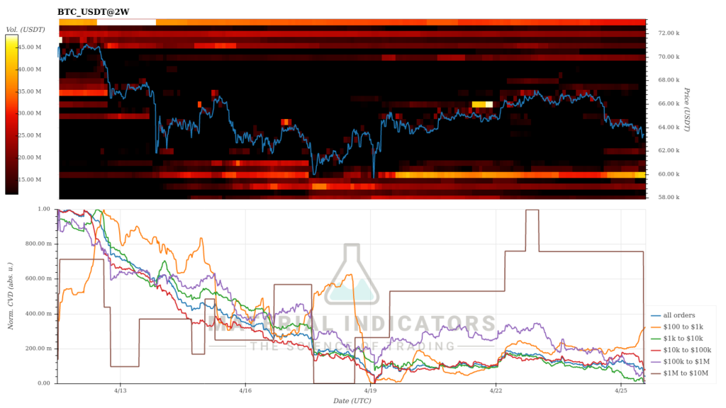 $60,000 레벨에서의 매수 주문은 여전히 존재합니다. 오늘 갈색 고래가 BTC를 매도했지만 한달전과 비교해서 특별히 변한것이 아무것도 없습니다. 범위를 아래로 돌파하기 위해선 많은 현물 매도가 필요한 상황입니다. 저는 가격이 하락할때마다 $60,000 레벨에서의 매수 델타를 체크하고 있습니다.