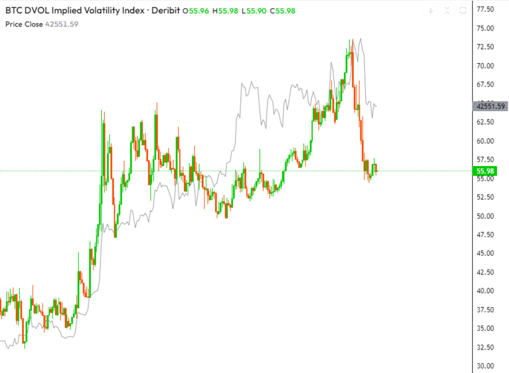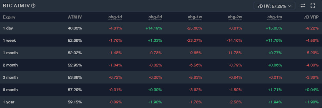 옵션시장은 현재 약세 감정이 자리잡았습니다. OTM 풋옵션에 대한 수요가 높고 콜옵션 매수의 열기는 이전보다 많이 식었습니다. 이벤트가 사라졌고 BTC 가격이 많이 높아졌기 때문에 사람들은 현재 BTC의 가치를 다시 평가하기 시작할 것입니다.