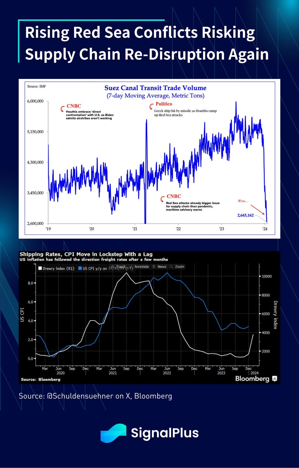 Furthermore, while the easing of supply chain dislocations was responsible for much of the goods deflation in 2023, the base effect benefits will dissipate this year, and the recent conflicts in the Red Sea have started to skew shipping rates much higher in the foreseeable future.