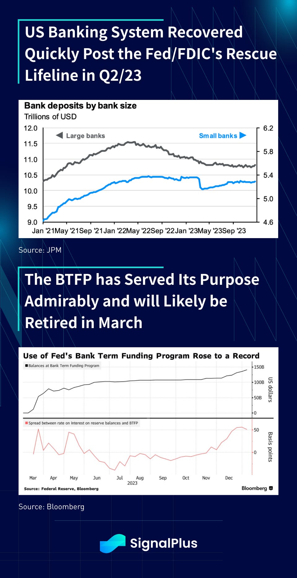 The BTFP program served its mission by quelling deposit-flight and stabilizing bank deposits, and is likely to be retired in March as emergency support is no longer needed. Usage of the facility has ballooned to record highs in recent months, as a drop in OIS funding has led to (yet) another exploitable arbitrage opportunity for banks.