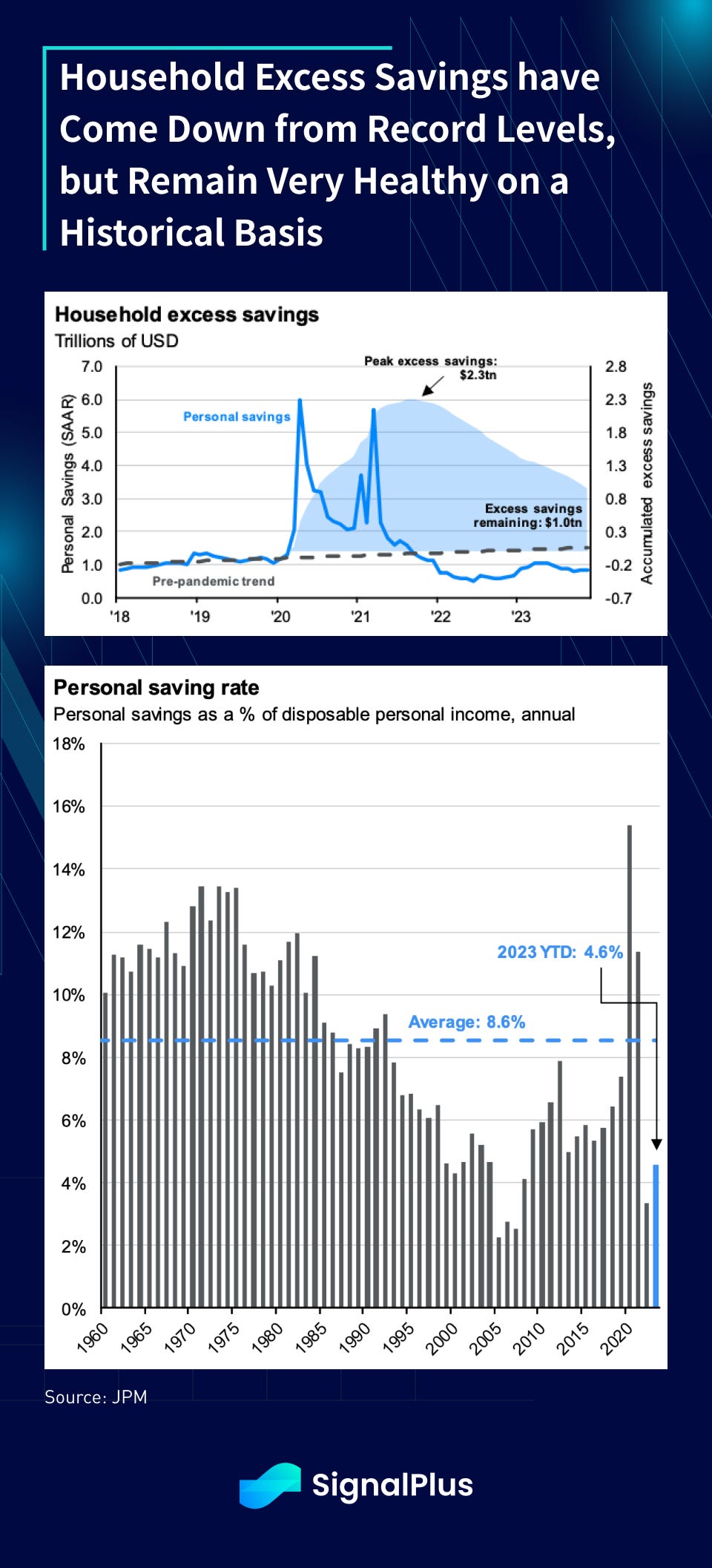 Now, while households’ excess savings rate and balance sheet (a whopping $2.3 trillion at the peak) have declined from the pandemic highs, they remain very healthy by historical standards, and much of the drawdown has been used to pay off debt, make equity investments, and fuel retail spending.