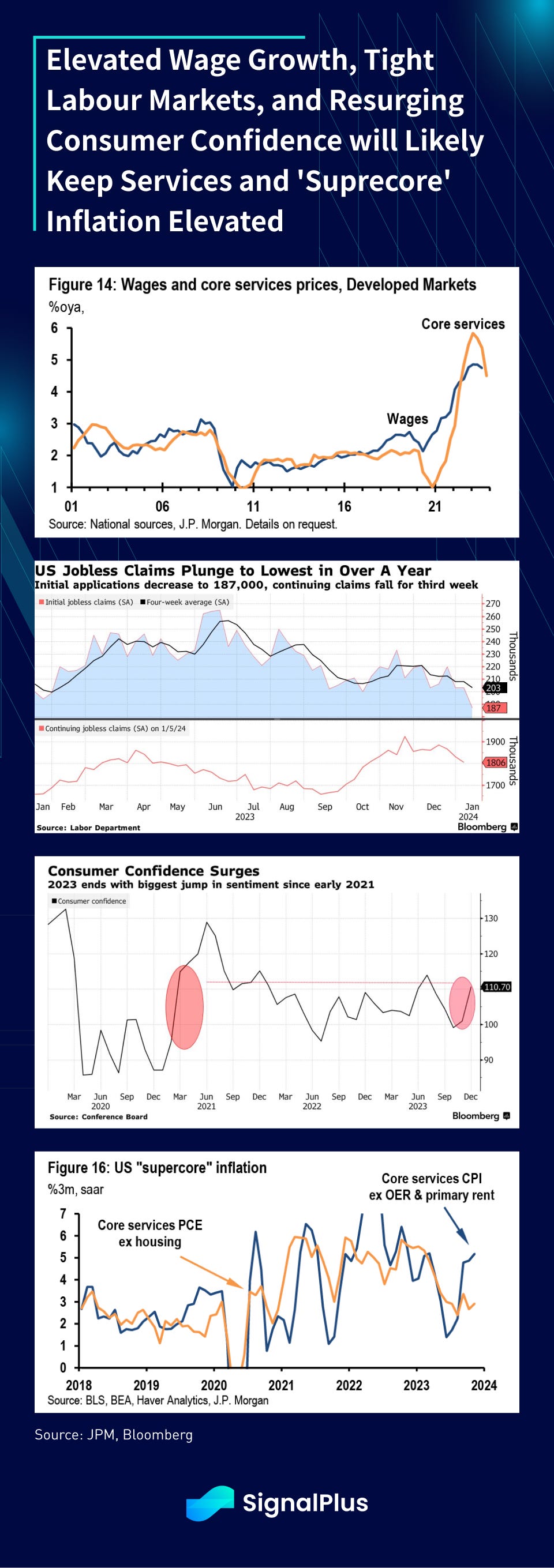 On the services side, the combination of still highly elevated wage growth, secularly tight US labour markets, and resurgence of consumer confidence will likely keep services and ‘supercore’ inflation much higher than the Fed wants to see.