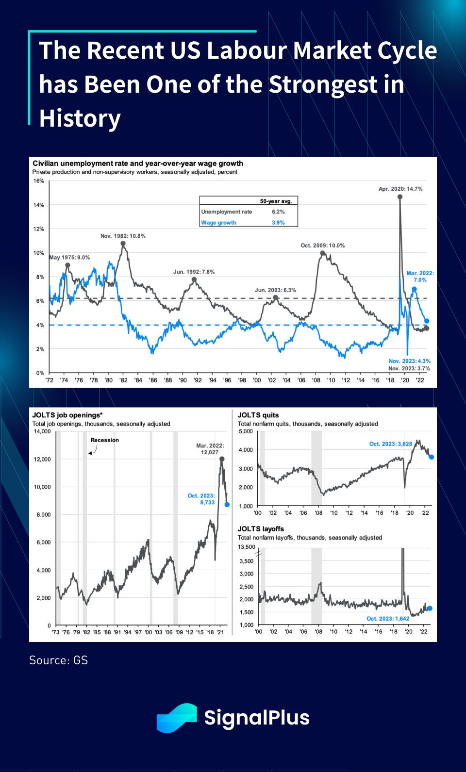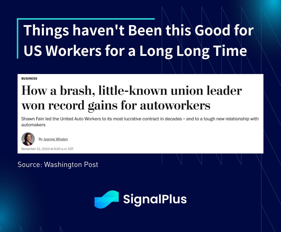 As you no doubt have heard, the current US labour market has been one of the strongest cycles in history, with record low layoffs, elevated job openings, and wage growth trending at 40-year highs and well above GDP. A number of labour unions (e.g UAW) secured high-profile and record concessions in their labour disputes, as wage workers continue to gain bargaining power through this growth cycle.