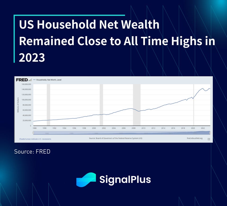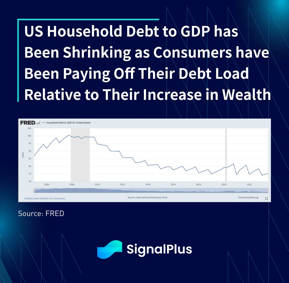 For what seemed like the longest time, I have always been told that the US consumer is persistently over consuming and the situation is untenable. Yet, in 2023, US households’ net wealth (inclusive of debt) remains close to record highs, continuing a 40-year ascension barely skipping a beat.