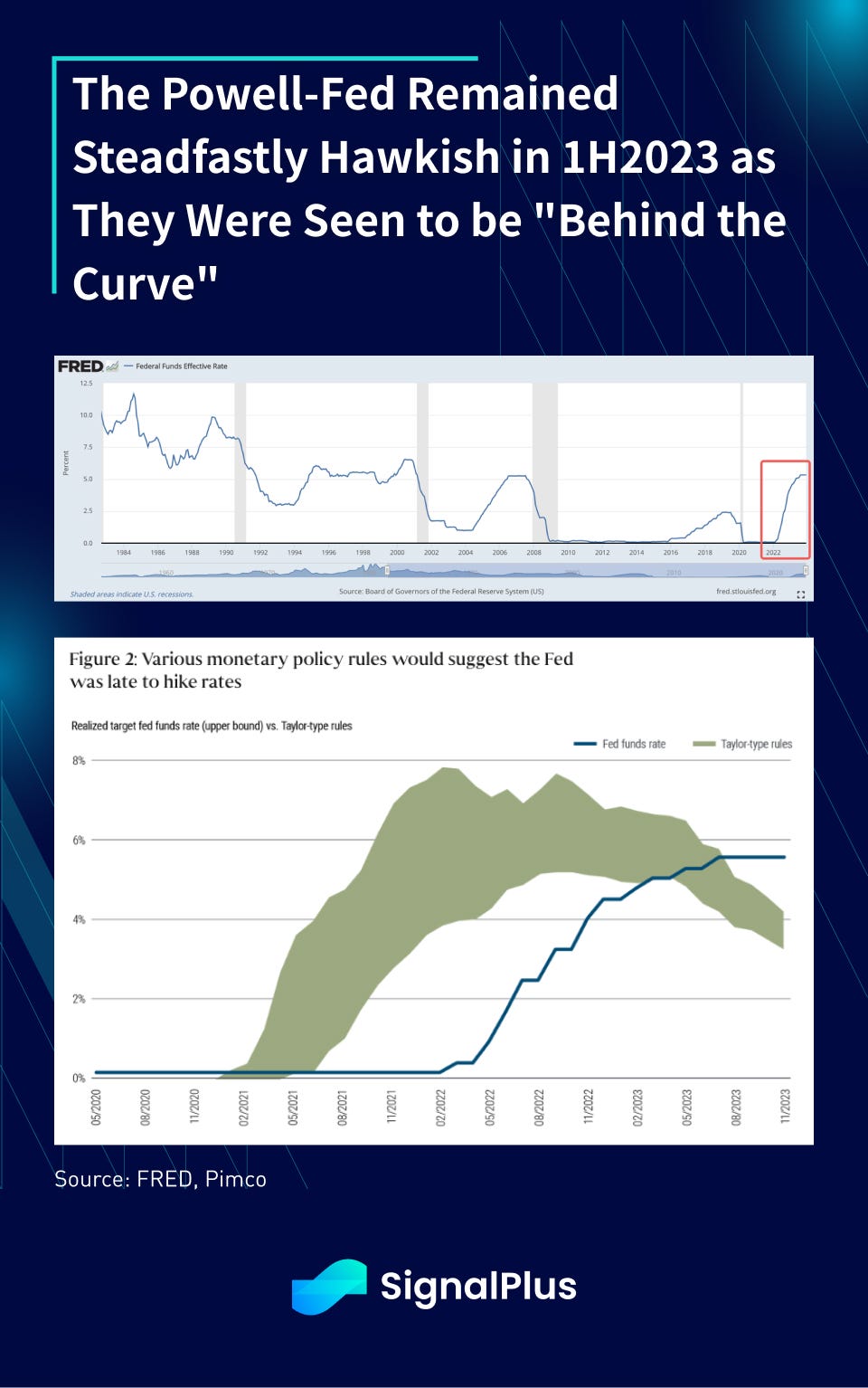 Asset prices were widely expected to fall off a cliff, with bond yields at risk of a ‘taper-tantrum’-redux as the Fed went on an unprecedented rate tightening campaign. The first half of 2023 continued with the Powell-led Fed that remained steadfast with its inflation-fighting narrative, challenging asset markets that were fighting the FOMC nearly every step of the way.