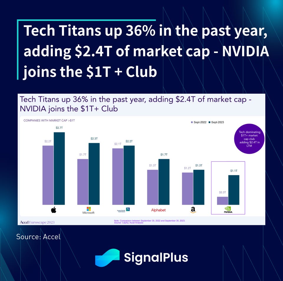 - Generative-AI added over $2 trillion in marketcap to US stocks in 2023, with Nvidia adding nearnly $1 trillion on its own due to chip demand. For those of us that are counting, Nvidia added nearly 70% of crypto’s total market cap all within the year.