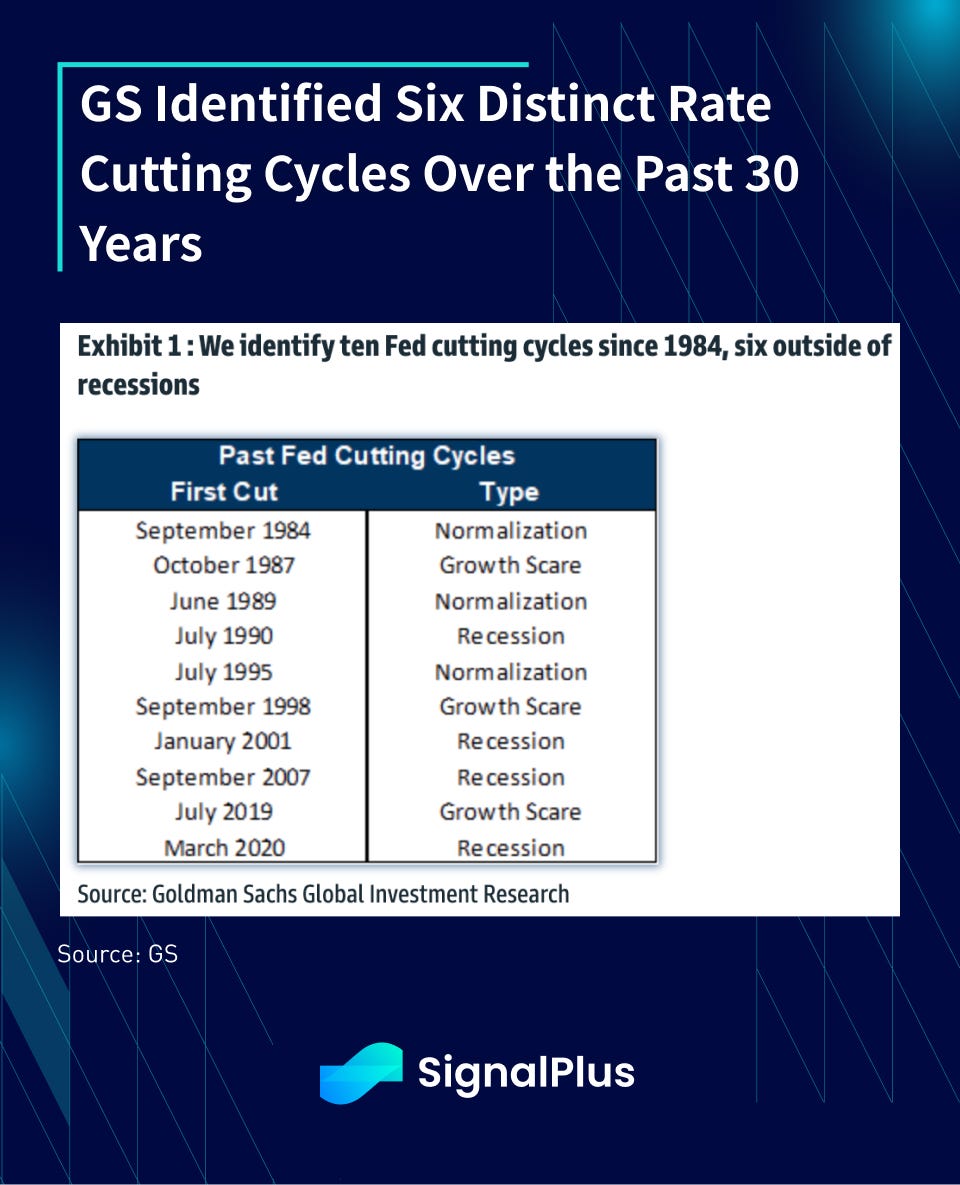 GS recently did a research piece looking at past ten cutting cycles, with a good cross section of scenarios and outcomes heading in and out of each period.