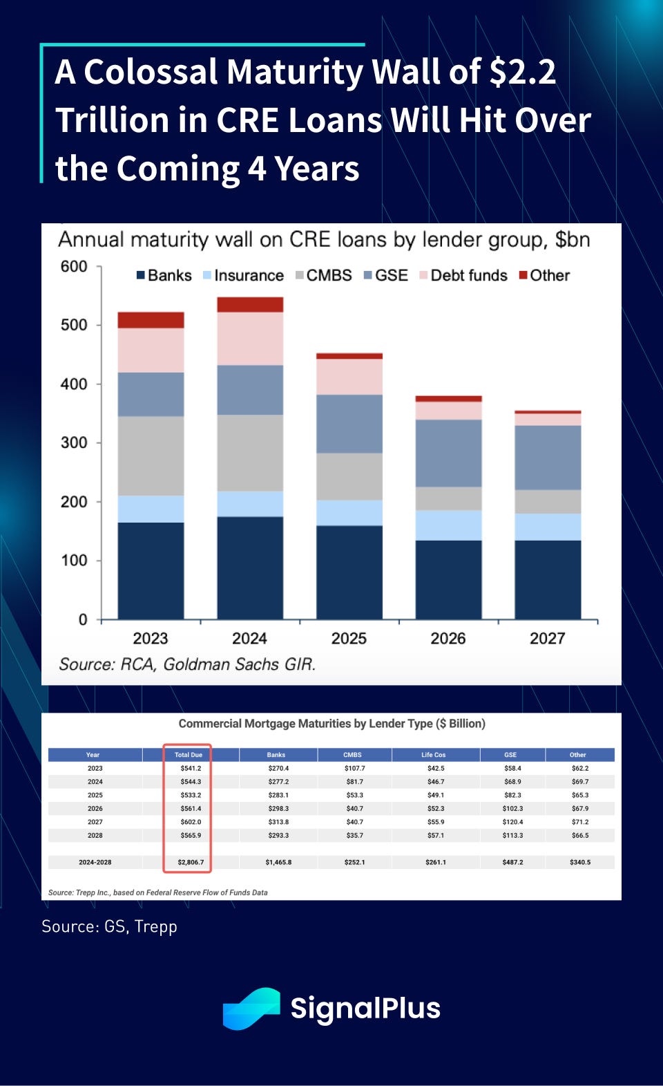 The troubled sector struggled with over $540bln of loans being due in 2023, the largest amount in a single calendar year according to data firm Trepp. To make things worse, there will be a tsunami-wall of $2.2 trillion in maturing debt coming due over the next 4 years, and loan delinquency rates have already started to climb as borrowers are unable to service or extend these loans in the current rate environment.