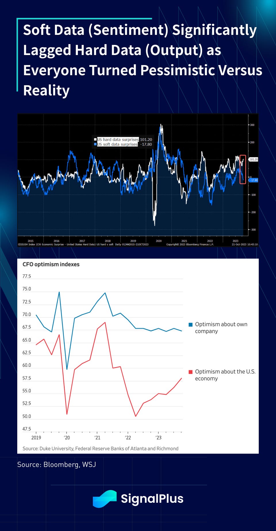 Despite economic data that suggested otherwise, investors chose to remain in the ‘glass half empty’ camp with soft data sentiment surveys consistently underperforming hard data outputs — all year — as if being a contrarian-bear represented some macro badge of honour.