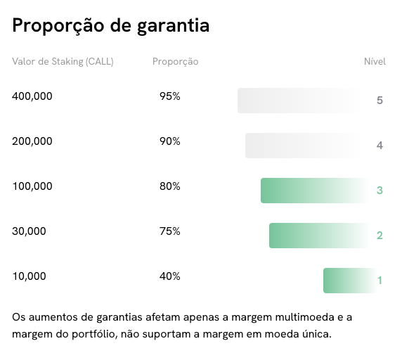 - Utilização como Margem: Até 95% do valor em staking pode ser usados como margem para operações de futuros e opções. Essa flexibilidade única permite que os investidores aproveitem o melhor dos dois mundos, potencializando seus rendimentos enquanto operam no mercado.
