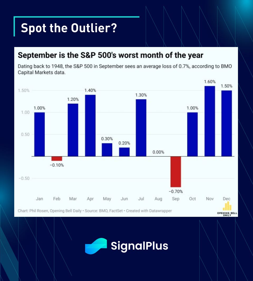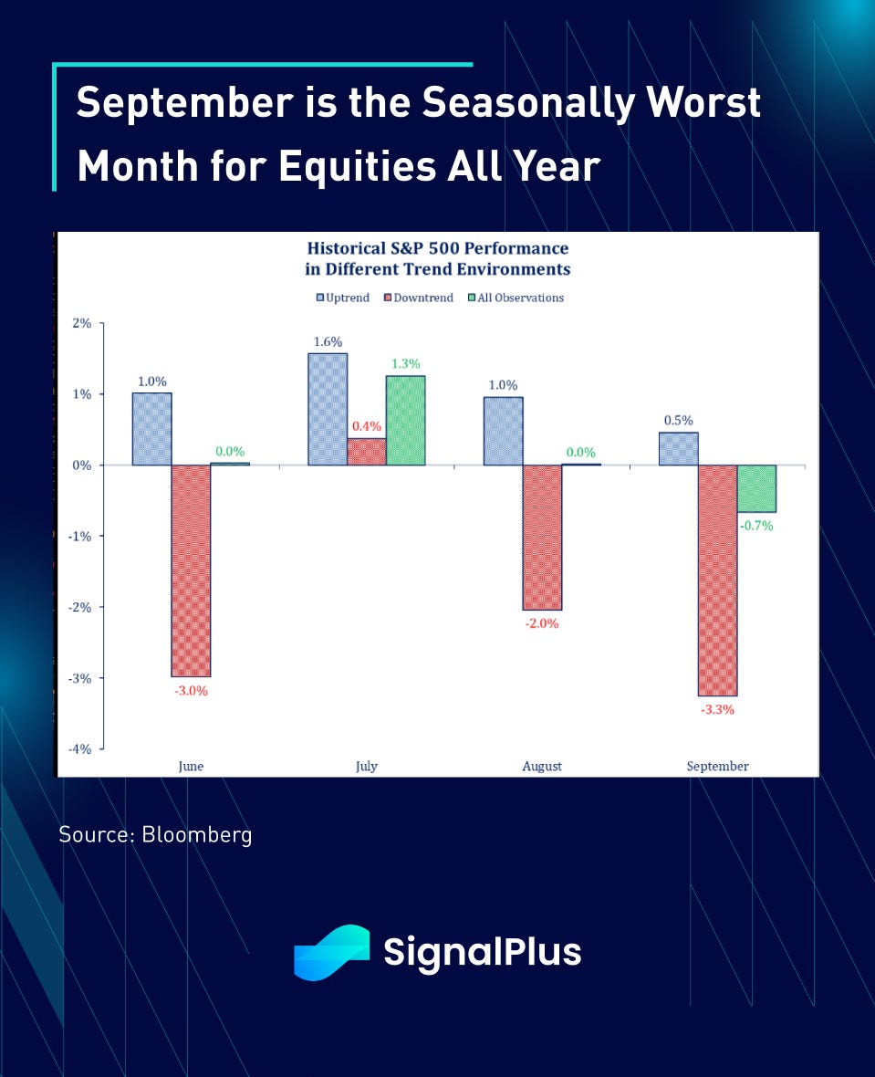 With that being said, September is seasonally the worst month for US equities during the entire year, reversing the good fortunes seen in July in the midst of summer. Will this year be any different? And will the potential catalyst come from a weak NFP to start things off in September? Will it come from a market pushback against Harris/Walz’s aggressive tax hiking plans? Will inflation be making a surprising and unwelcome return? We expect September to be a busy month, starting with this Friday’s payroll data once US markets return from their long-weekend holidays.