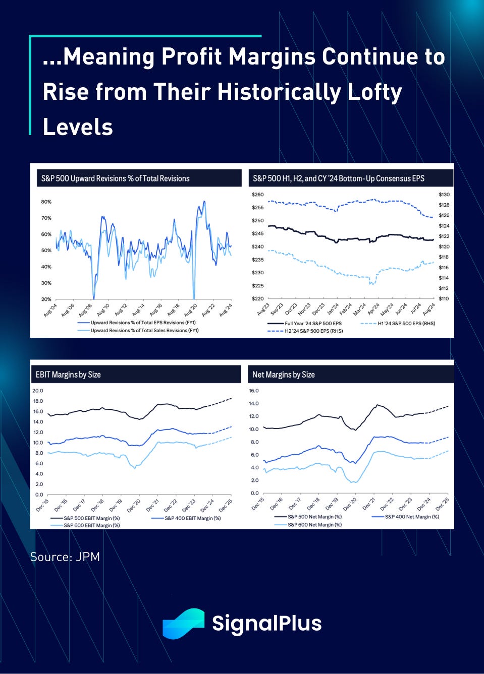 Over in equities, long-only and mutual fund investors have been large buyers of the market since the early month sell-off, and investors continue to find comfort in equities with SPX earnings continuing to grow thus far. Furthermore, underlying fundamentals remain extremely healthy as well, with both EBIT and Net Margins still rising from their historically lofty levels, as companies continue to find ways to stay profitable despite the various economic uncertainties.