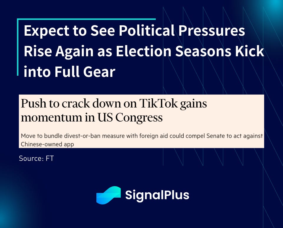 On the political side, the US imposed (anticipated) tariffs on Chinese steel amongst some other new restrictions, along with further apparent progress made on the TikTok bill in Congress.